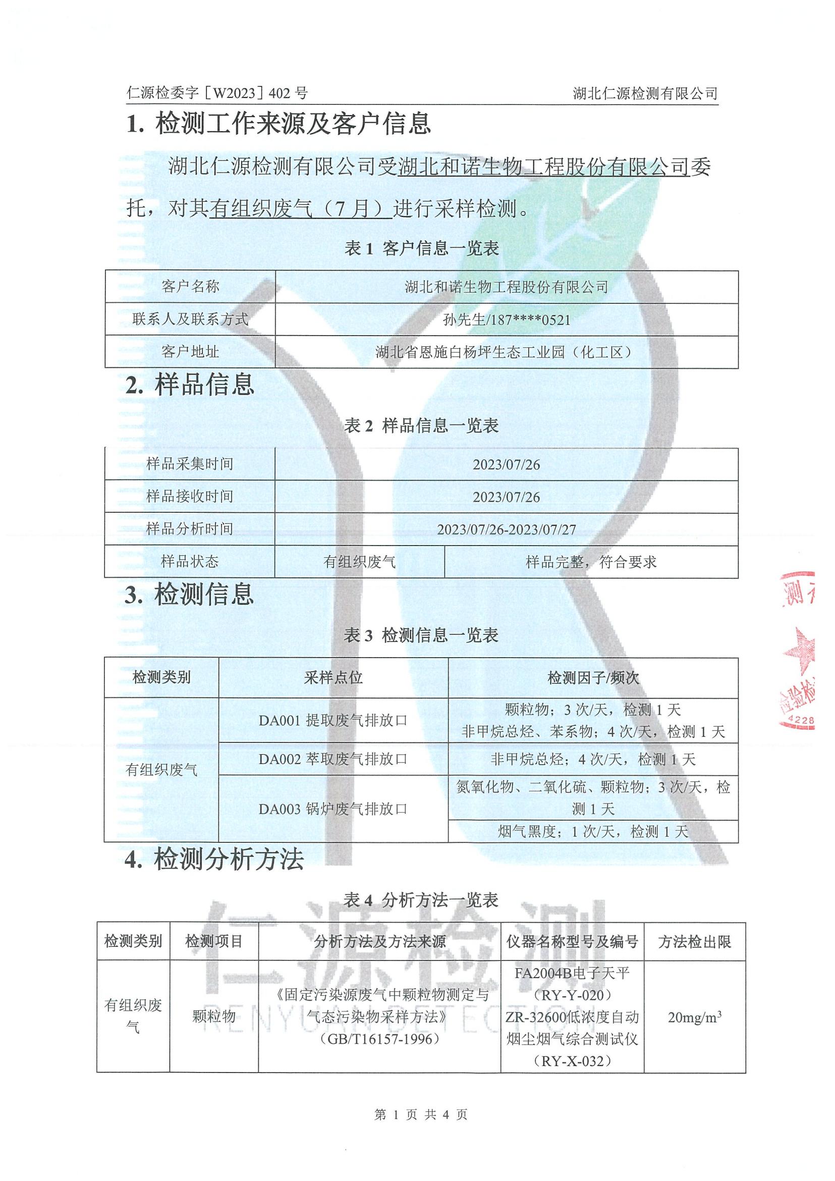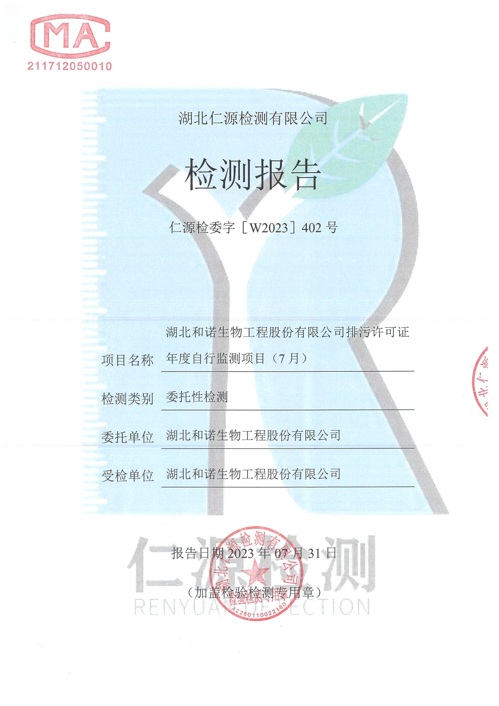湖北和諾生物工程股份有限公司排污許可證年度自行監(jiān)測(cè)項(xiàng)目(7月)公示