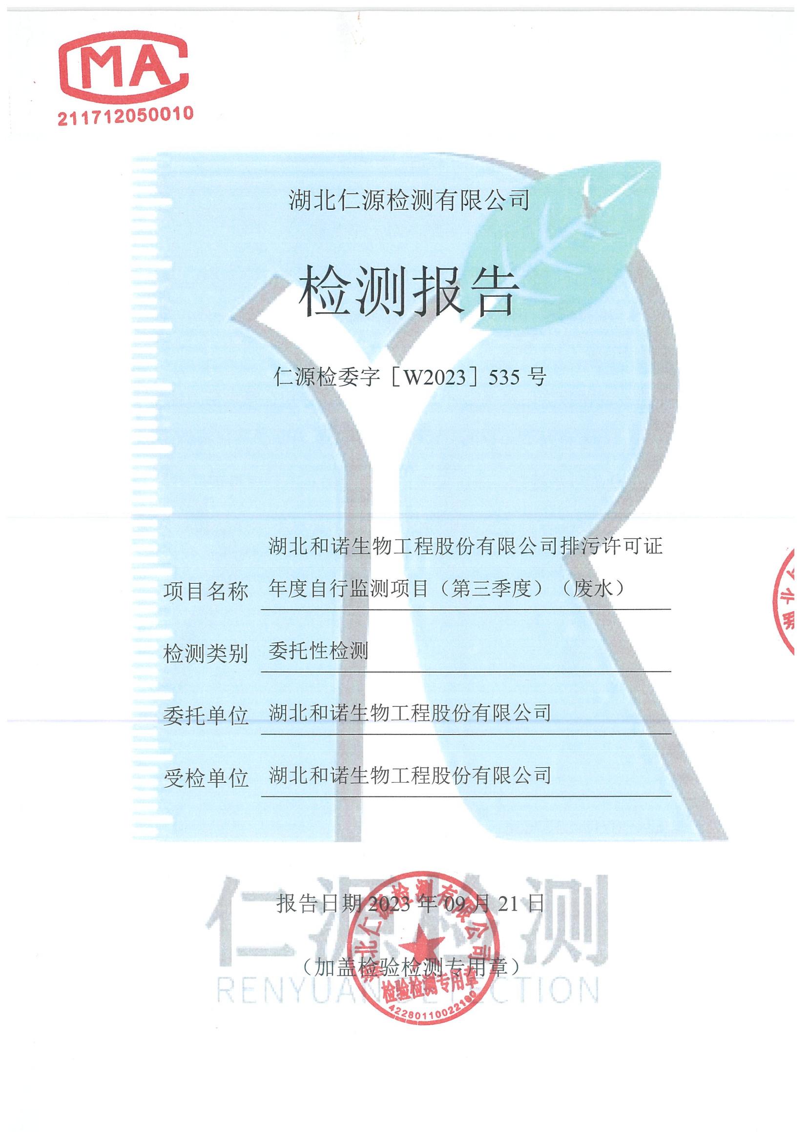 湖北和諾生物工程股份有限公司排污許可證年度自行監測項目(第三季度)(廢水).pdf