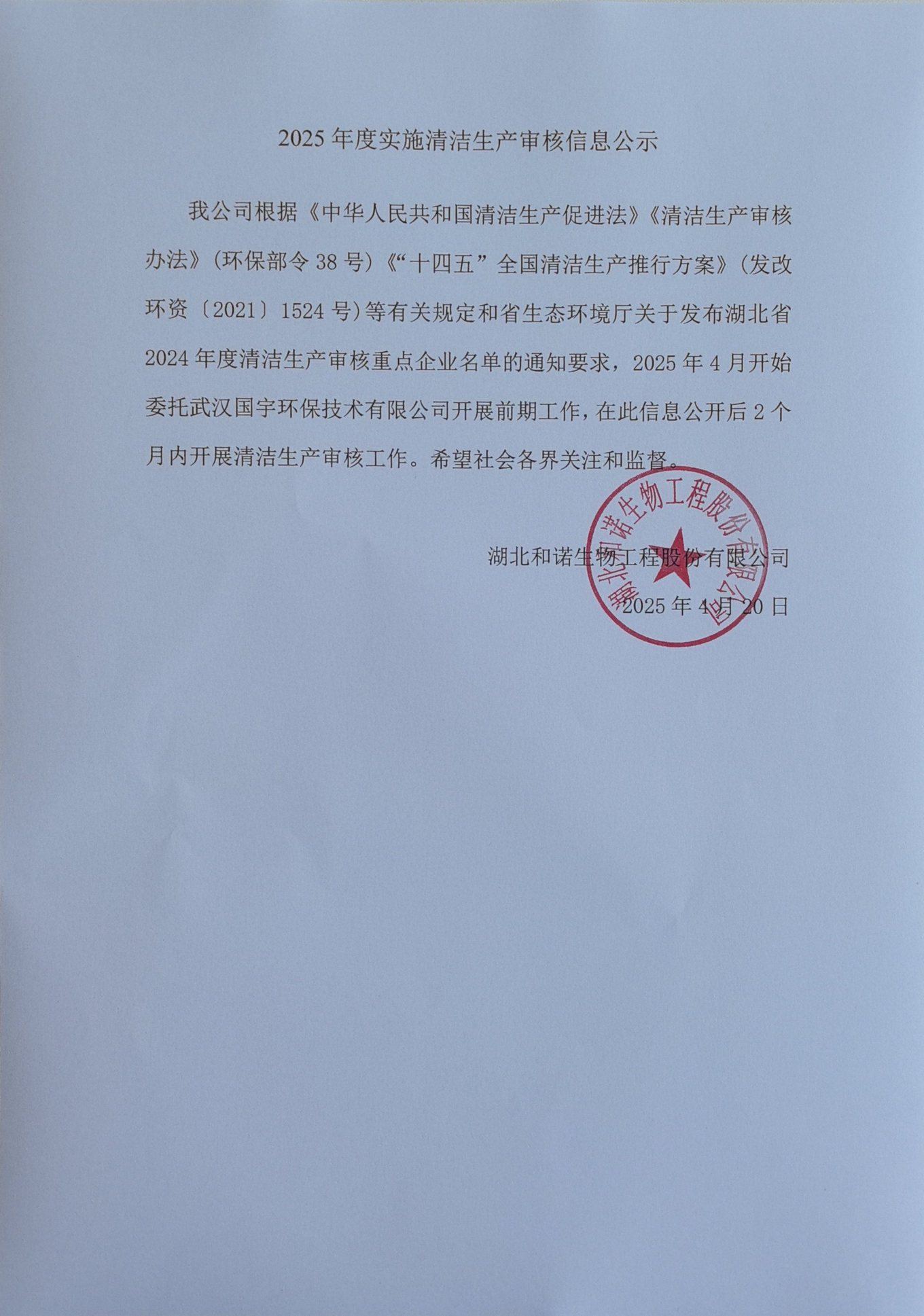 2025年度實施清潔生產審核信息公示
